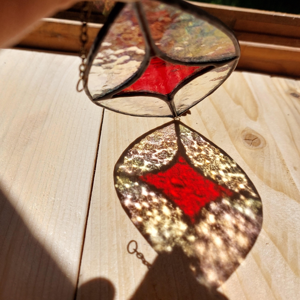 - Hygiène : Comme pour tout objet artisanal contenant du métal, il est recommandé de se laver les mains après avoir manipulé votre vitrail de manière prolongée (par exemple lors de son installation ou d'un nettoyage).