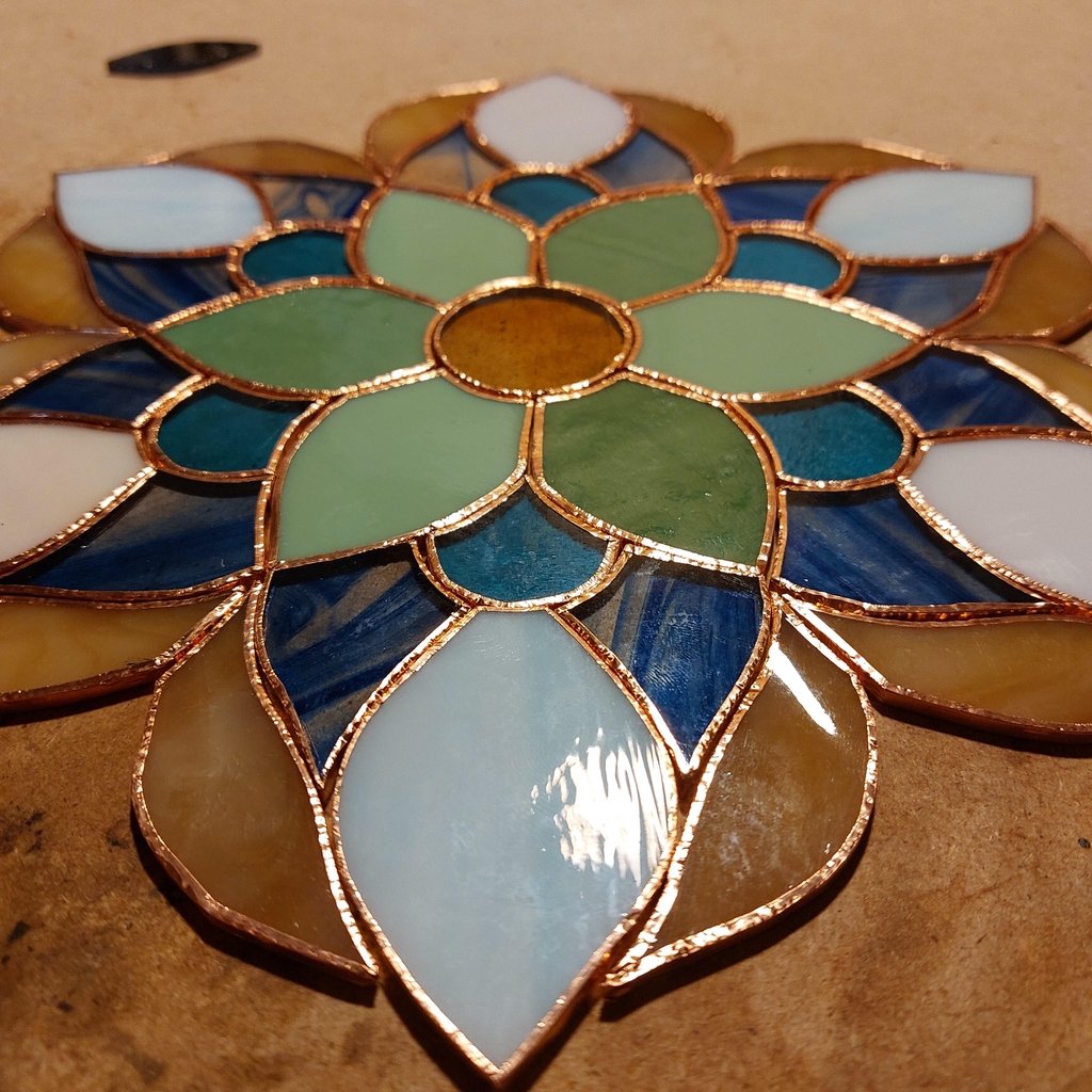 Pourquoi cette technique ? Elle permet de réaliser des motifs complexes, des courbes serrées et des objets de petite taille (comme mes attrape-soleils ou mes bijoux). C’est une méthode qui offre une grande liberté géométrique et une finesse de finition impossible à obtenir avec le plomb traditionnel.